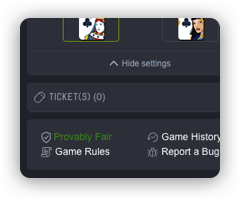 In each game locate game history and click on “provably fair” icon.